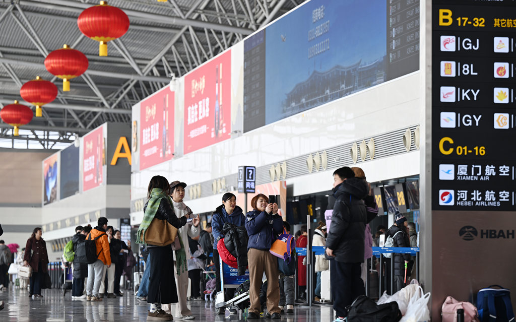 2月1日,旅客在石家庄正定国际机场候机。