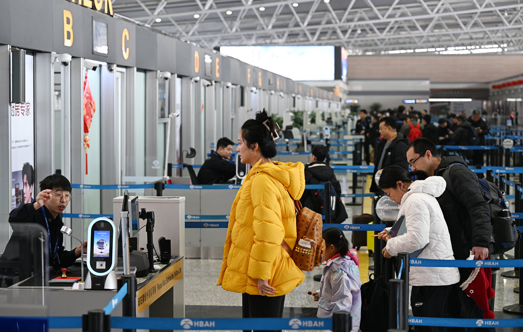 2月1日,石家庄正定国际机场,旅客在办理乘机手续。