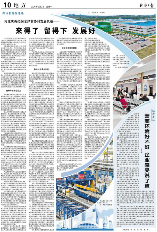 便利交通是唐山良好营商环境的体现。近年来,唐山坚持将优化营商环境作为统筹有效市场和有为政府、激发经营主体创新活力的关键之举,努力打造投资兴业、创新创造热土,夯实首都经济圈重要支点。在2025年度全国工商联开展的“万家民营企业评营商环境”活动中,唐山位列生产总值超5000亿元地级市第4位。
