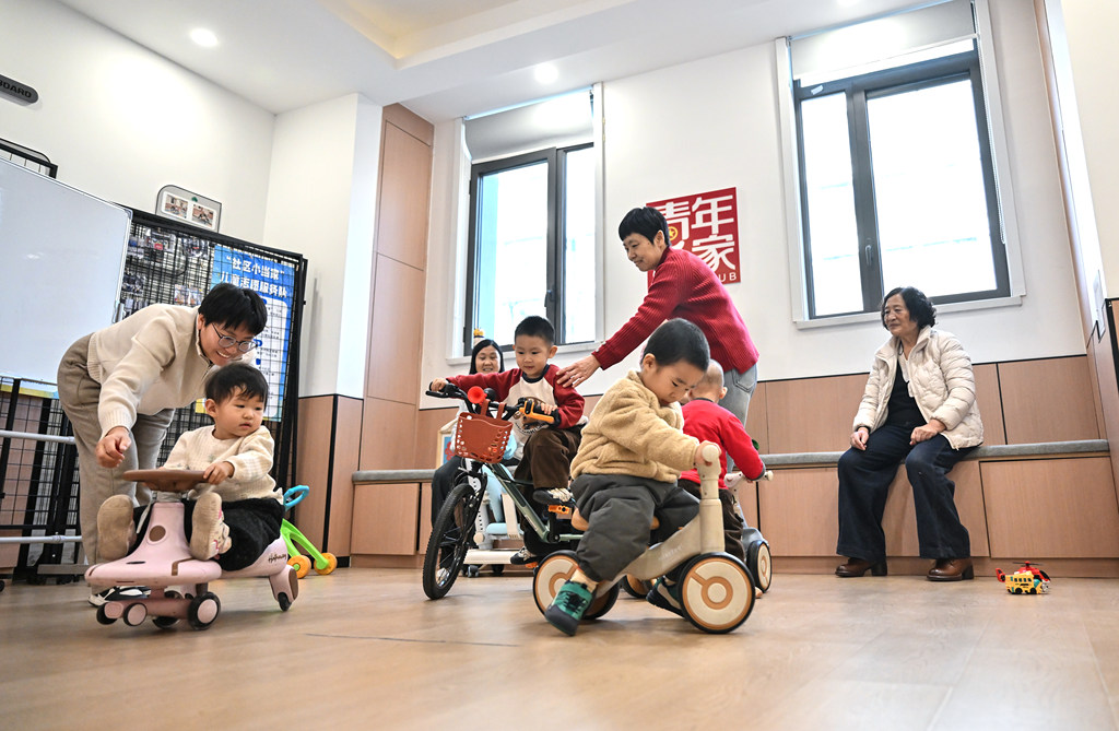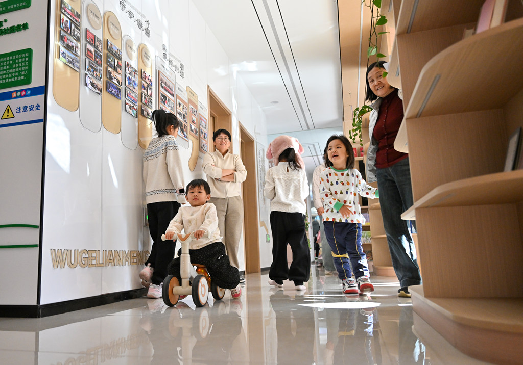 2月2日,雄安新区启动区易安社区党群服务中心,孩子们在儿童活动区快乐玩耍。