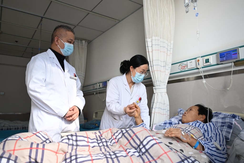 1月15日,河北医科大学第二医院神经内科主治医师刘晓霞(左二)在医联体共建单位邢台市南和区人民医院查房。