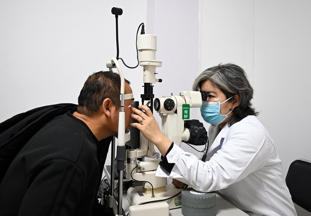 1月15日,河北医科大学第二医院眼科主治医师崔莉在医联体共建单位邢台市南和区人民医院为患者做眼部检查。