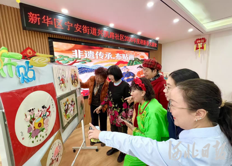 河北日报客户端讯(周沫含)1月30日,石家庄市新华区兴凯路社区新时代文明实践站张灯结彩、笑声不断,一场热热闹闹的社区迎新春大联欢在这里拉开帷幕。居民们在歌舞欢腾中品非遗韵味,在手工创作中拾传统雅趣,在笔墨书香中纳新春福气。