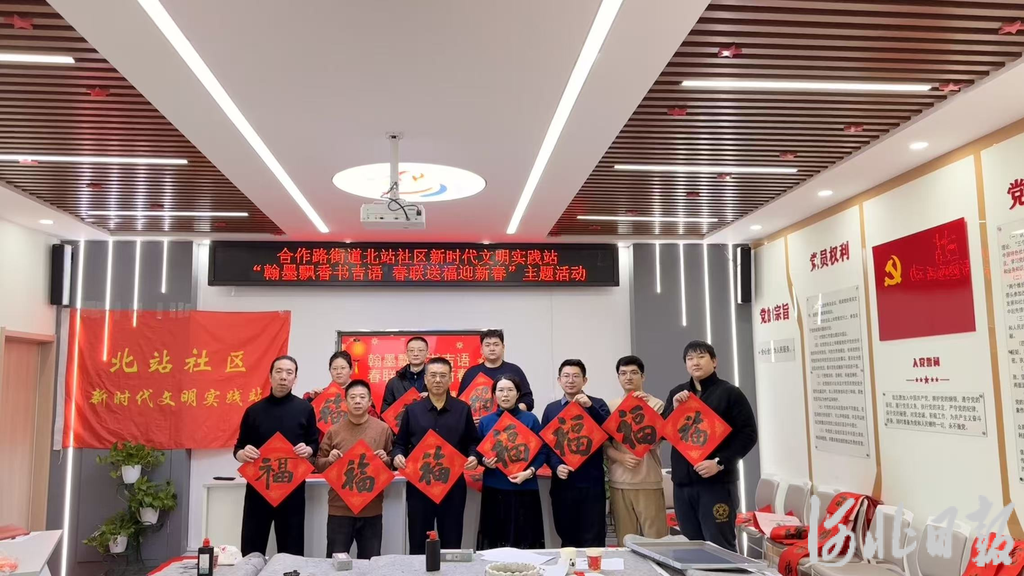 河北日报客户端讯(范红亮)1月30日,石家庄市新华区合作路街道北站社区新时代文明实践站联合曹郁书画工艺美术家工作室开展“翰墨飘香书吉语 春联送福迎新春”主题活动,为居民送上新春祝福。