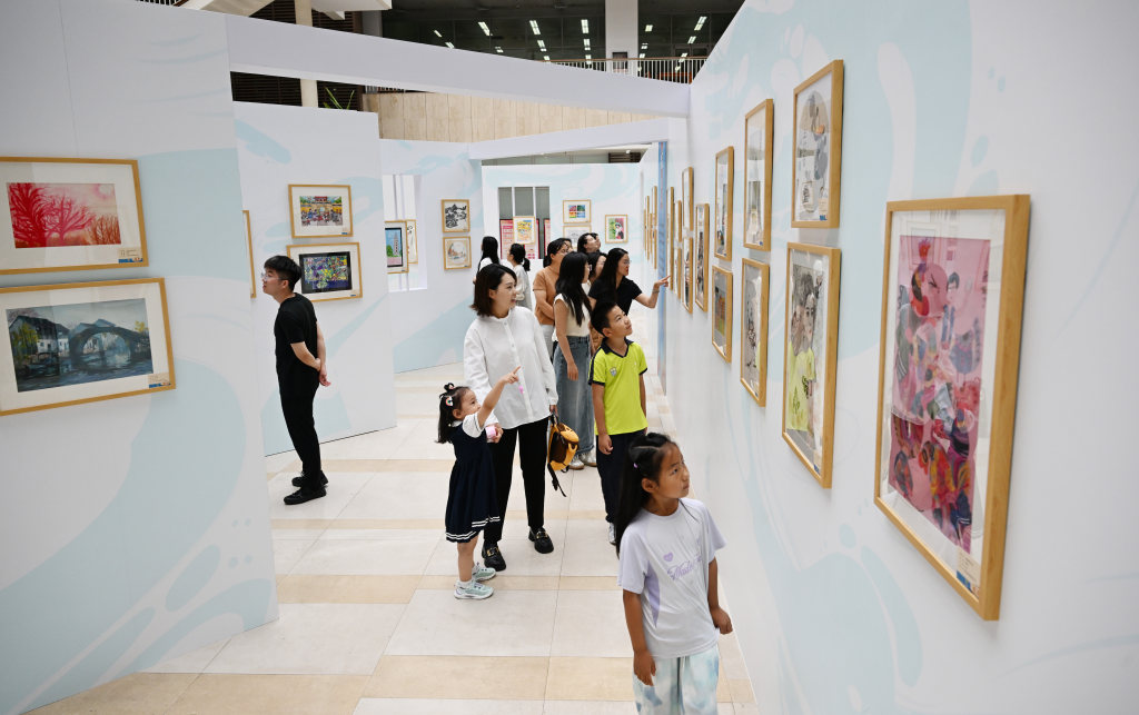 2025年7月12日,游客在河北省图书馆参观“绘·精彩”2025年河北省特教学校学生艺术展。河北日报记者史晟全摄