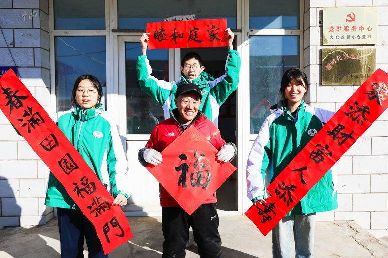 2月2日,张家口市第七中学师生在为村民写春联、写福字。