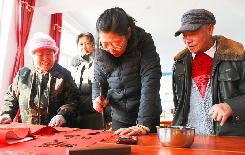 2月2日,张家口市第七中学教师在为村民写春联、写福字。