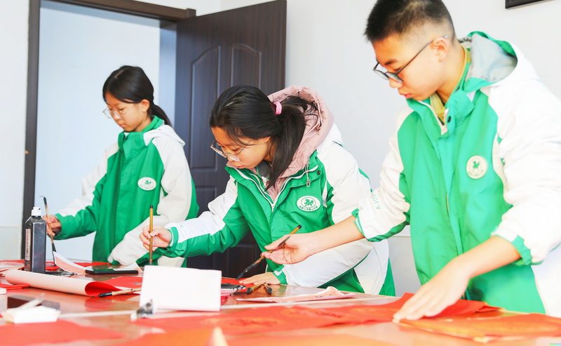 2月2日,张家口市第七中学学生在为村民写春联、写福字。