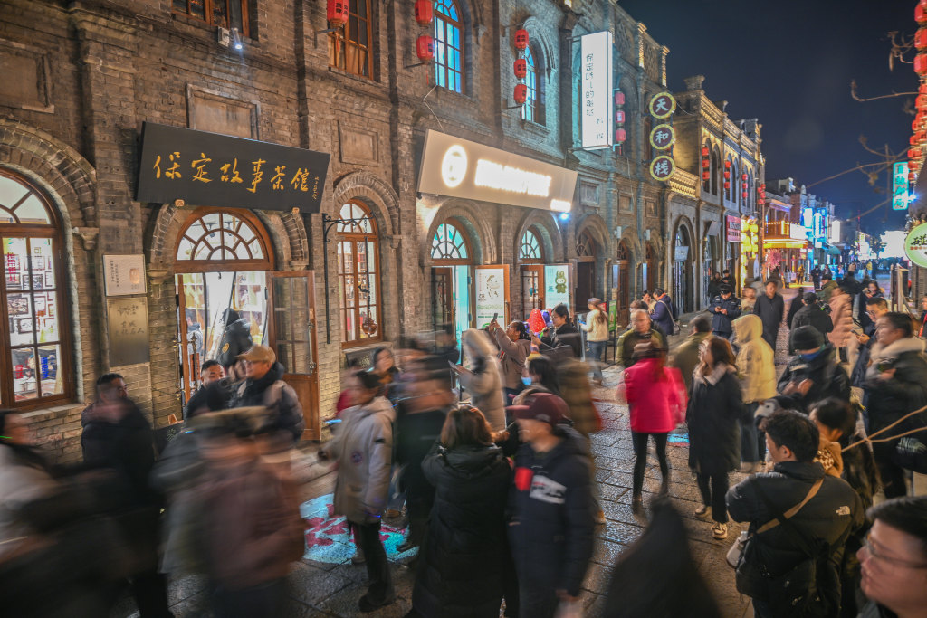 2月2日晚,保定西大街游人如织。