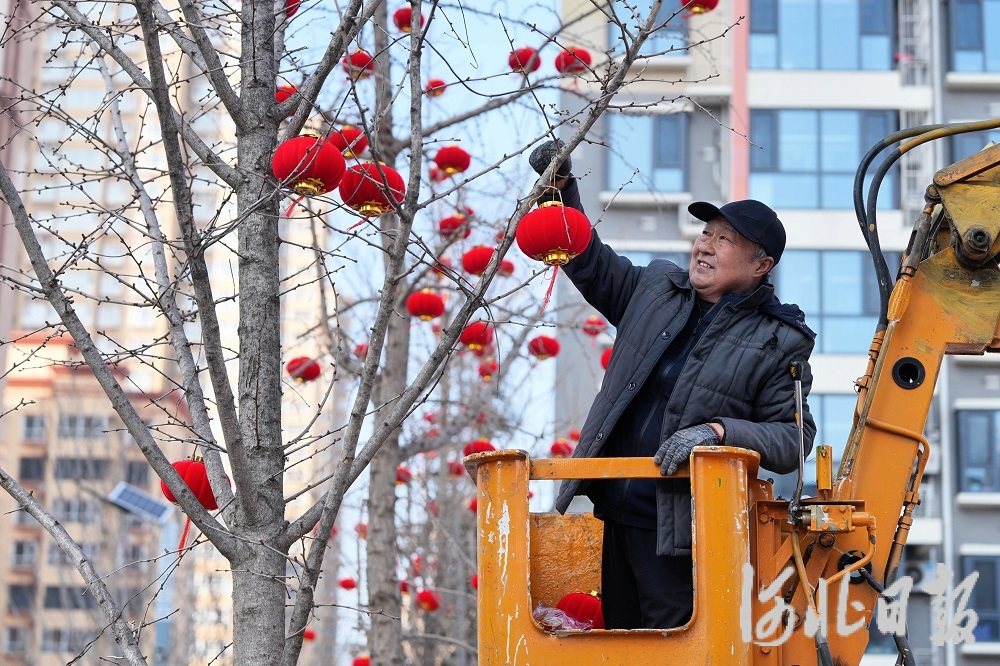2月2日,正定县塔元庄村,村民正在悬挂红灯笼,节日氛围越来越浓。河北日报记者王伟摄