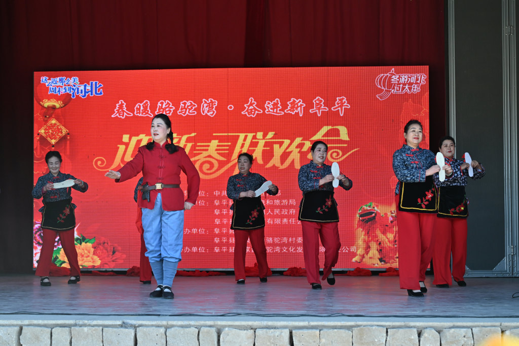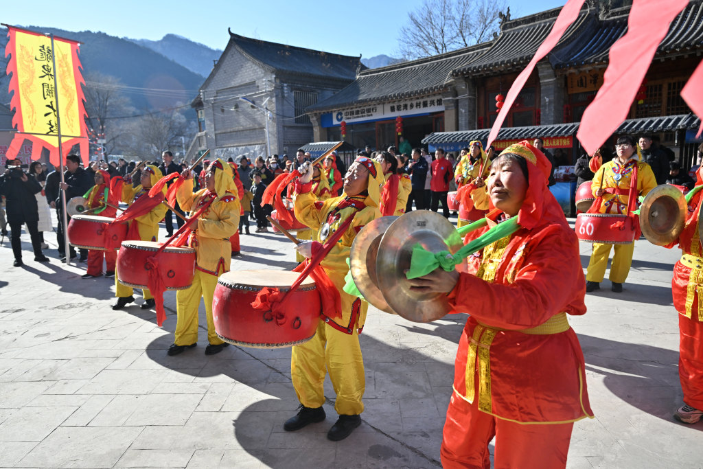 2月3日,骆驼湾村以热闹锣鼓欢迎八方来客。