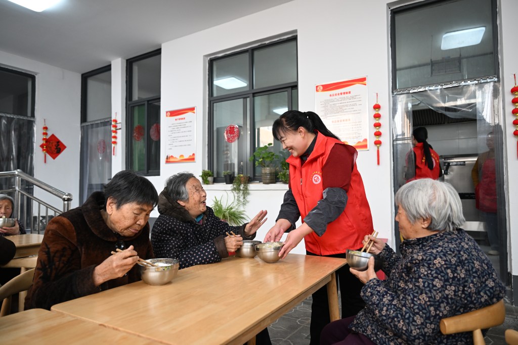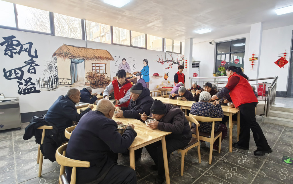 2月4日中午,邢台市南和区志愿者在左李召村幸福互助院幸福餐厅为老人提供助餐服务。