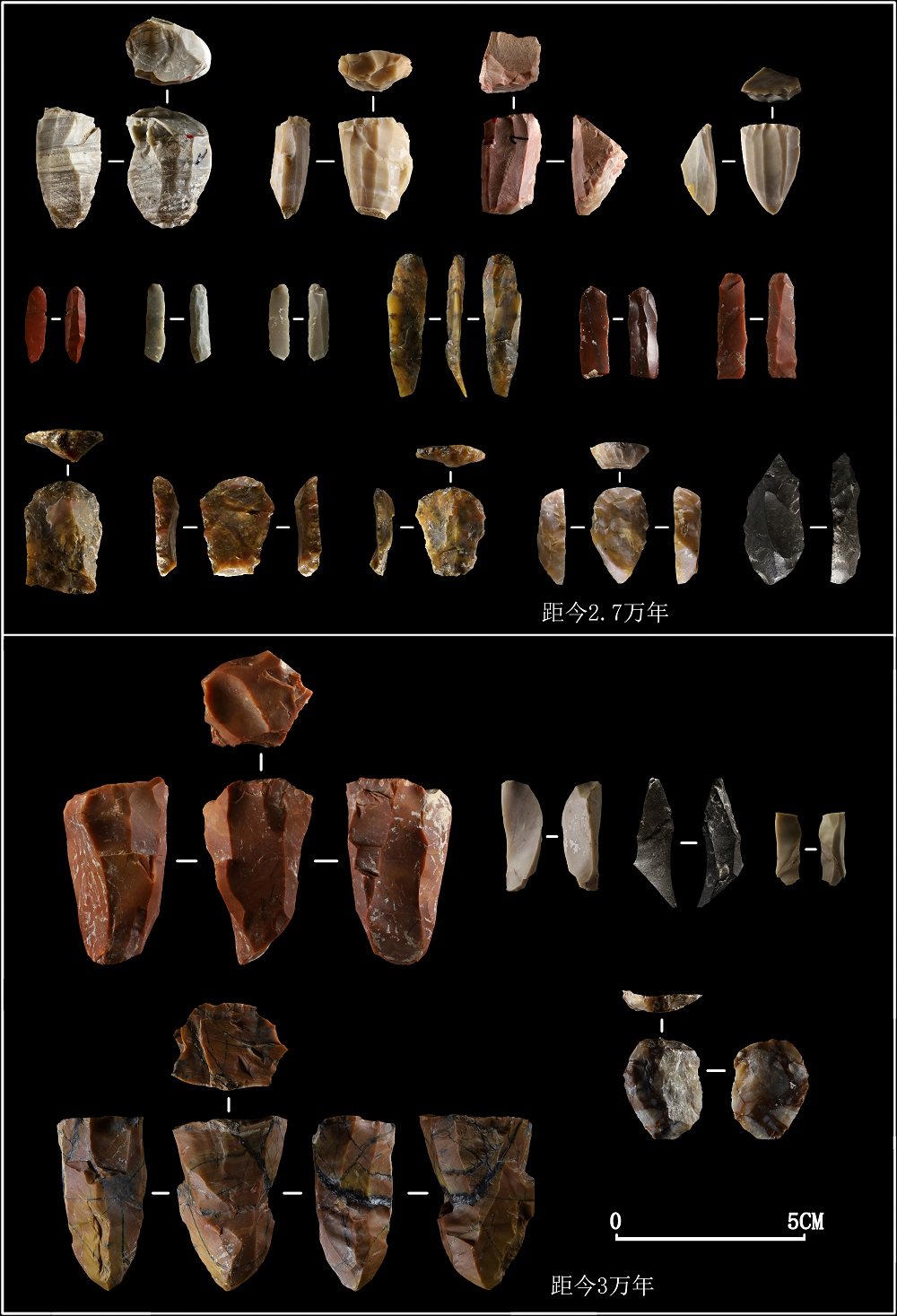 细石叶技术起源更是国际学界争论的焦点。以往观点多认为其起源于西伯利亚贝加尔湖地区,而后向南传播。后有学者认为起源于韩国。也有学者认为起源于华北。新庙庄遗址提供了连续的关键证据链:从4.2万年前后出现小石叶技术,3.9万年至3.4万年有“细石叶化”的迹象,3万年、2.9万年更加进步的小石叶技术,再到2.7万年前的典型细石叶技术——一个清晰、连续演化的过程正在浮现。