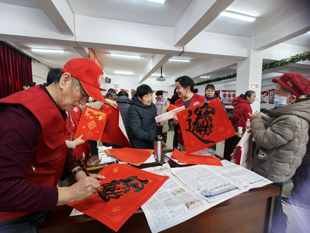 据悉,这已是该志愿者团队春节前夕第四次开展义务写春联活动。12名退休老干部志愿者以笔为媒、以墨传情,铺纸、研墨、落笔、收笔一气呵成,一副副饱含新春祝福的春联、一个个苍劲有力的福字送到村民的手中,为他们送上新春祝福。