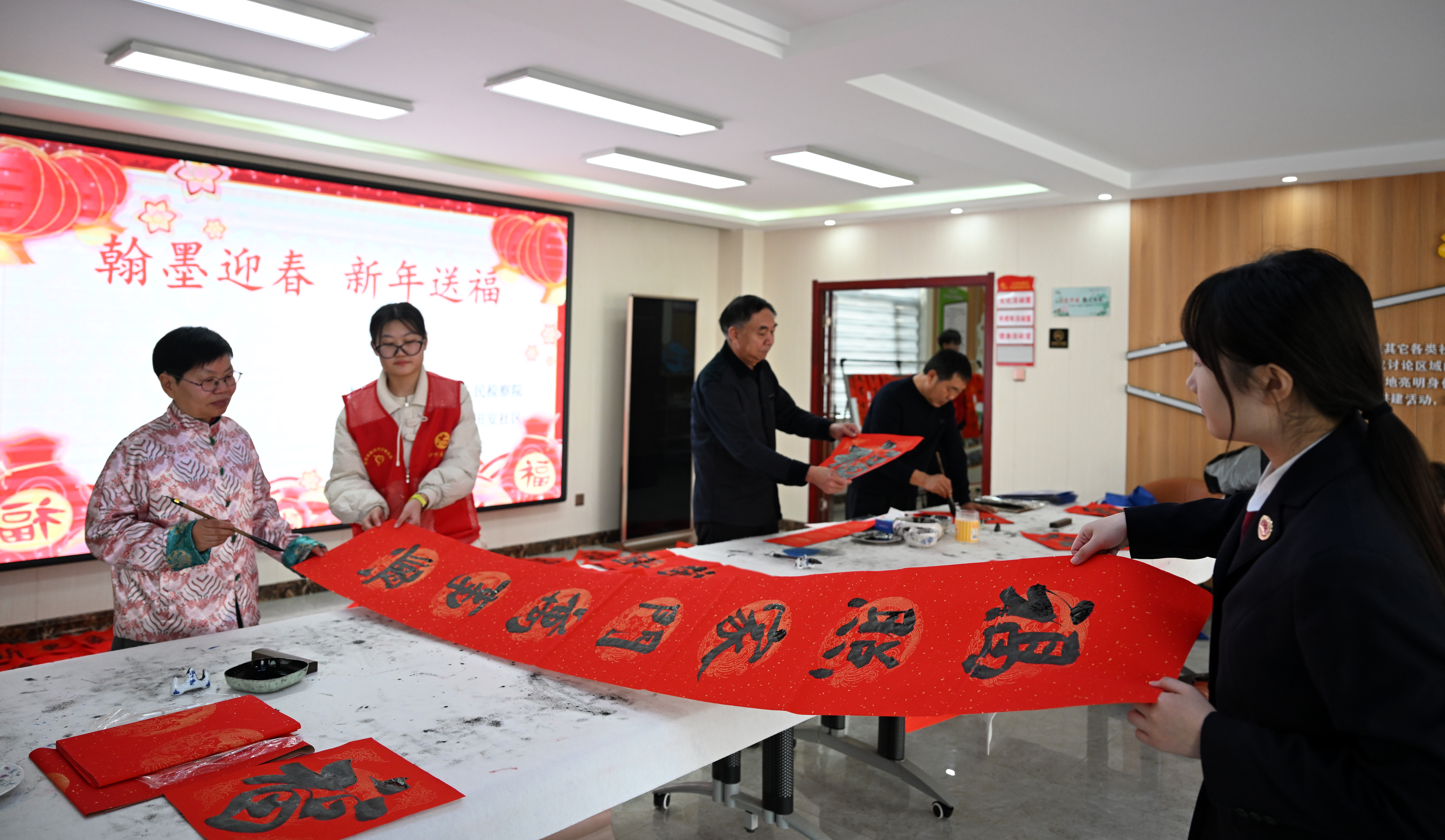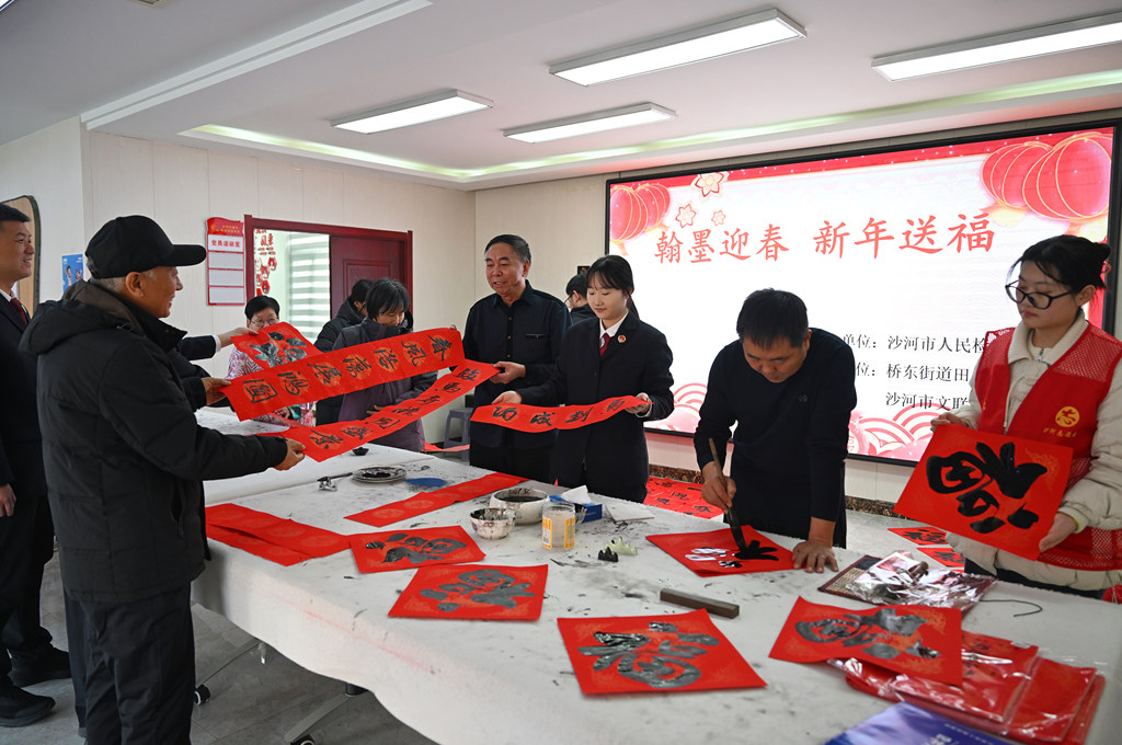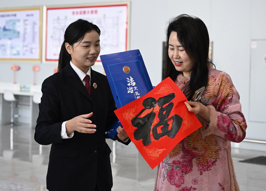 2月5日,沙河市人民检察院干警为居民赠送法治大礼包和福字。