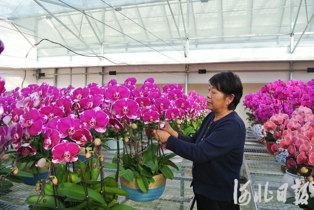 1月20日,盐山县的沧州绿宣花卉种植有限公司蝴蝶兰种植基地里,各色蝴蝶兰竞相绽放。工人们选株、组盆、打包,准备将一批蝴蝶兰发往沧州市的花卉市场。盐山县刘友章村村民刘金松2018年创立的这家公司,已建起超6万平方米的智能温室,成品花卉远销国内多地。