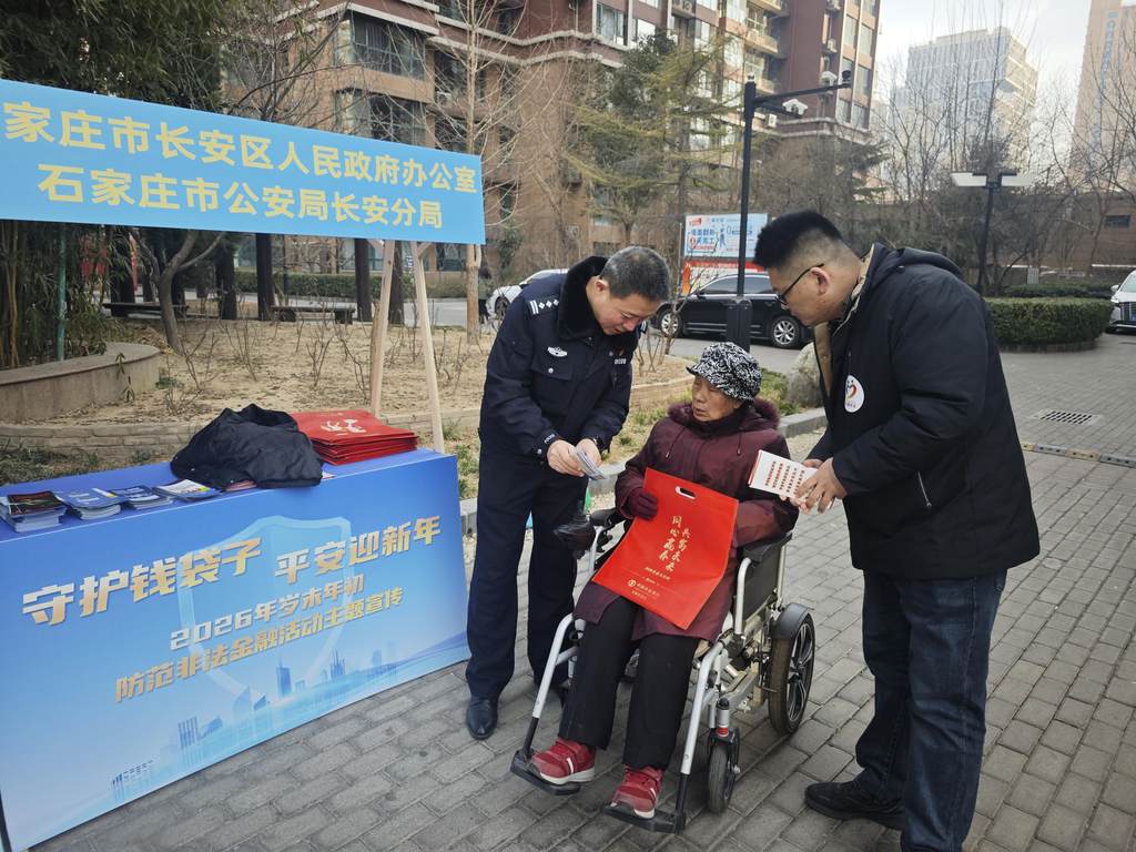 为提升社会公众金融风险识别能力和自我保护意识,2月4日,农行石家庄分行与石家庄市长安区人民政府办公室、石家庄市公安局长安分局紧密合作,在石家庄冠城小区共同开展以“守护钱袋子 过好平安年”为主题的岁末年初防范非法金融活动现场宣传,活动得到了河北省银行业协会的大力支持。