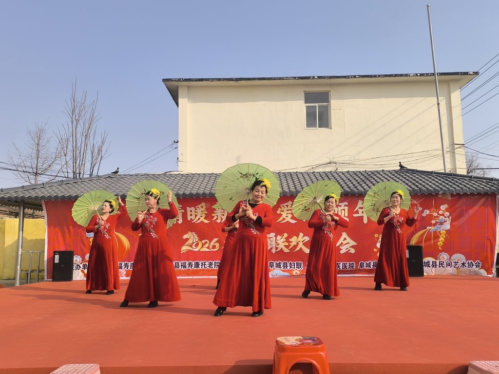 2月3日,河北省衡水市阜城县福寿康养中心内红灯高悬、暖意融融,由该县妇联、县民政局牵头,联合阜城县福寿康养中心、县中医院、华夏汽修厂、民间艺术协会共同举办的“情暖新春、爱满颐年”喜迎2026新春联欢会在此温馨启幕。入住老人、工作人员与社会爱心人士欢聚一堂,用歌声传递祝福,用舞蹈寄托期盼,让这个寒冬因团圆与关爱格外温暖。