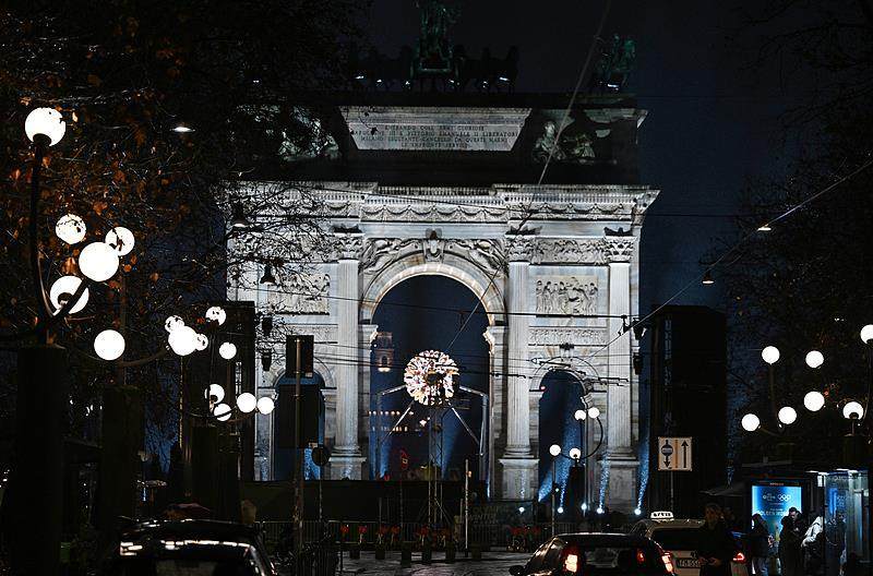 米兰冬奥会最终火炬点燃时刻并不是在圣西罗体育场,而是米兰市中心的和平之门,火炬装置像一个宝匣被镶嵌悬置在拱门下。在科尔蒂纳的迪博纳广场也会有同款装置,届时两个火炬台将同时点燃。