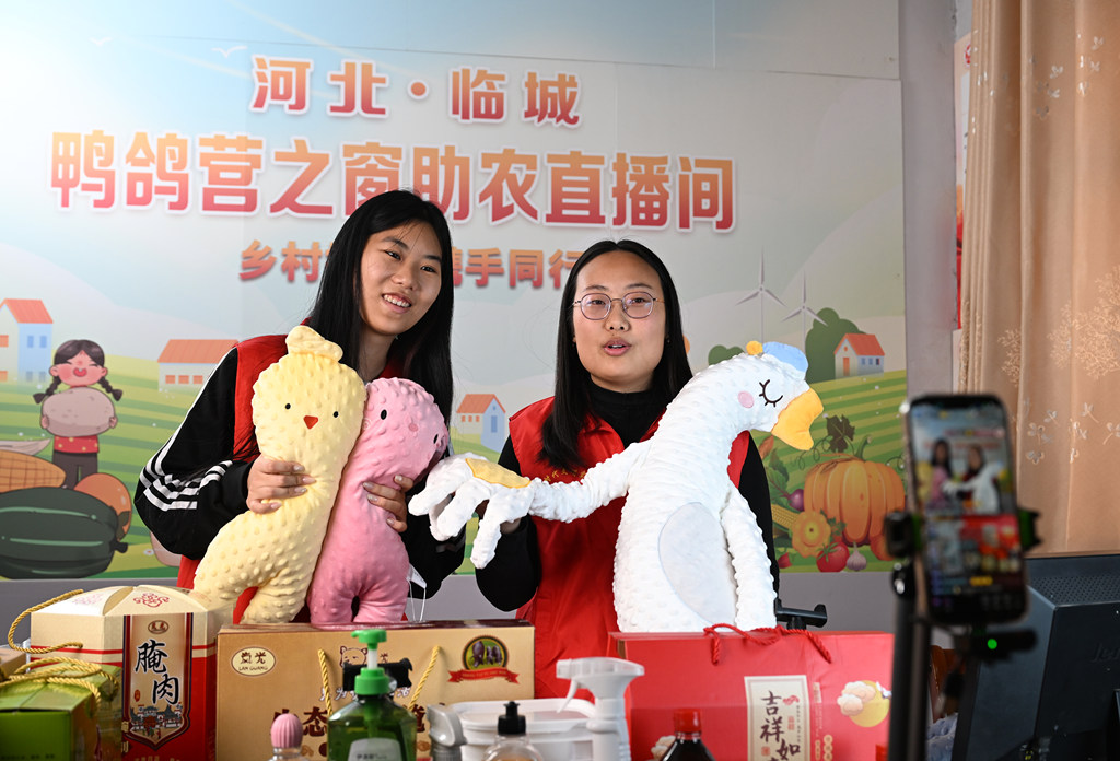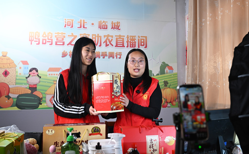 2月7日,临城县鸭鸽营乡干部在乡政府助农直播间直播推介。