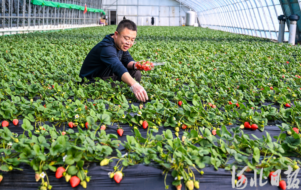 2月2日,承德御道口农垦实业集团有限公司员工在大棚内采摘草莓。河北日报记者 李东宇摄