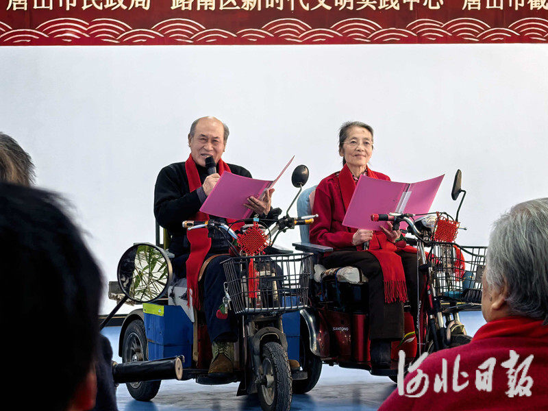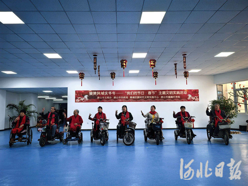 河北日报客户端2月9日讯(张皓月、袁睿鑫、王育民)今天下午,唐山市截瘫疗养院一层活动室内暖意融融,欢声笑语不断。由唐山市精神文明建设办公室、路南区新时代文明实践中心、唐山市截瘫疗养院联合主办,路南区委社会工作部、共青团路南区委、友谊街道新时代文明实践所、梁家屯路街道新时代文明实践所共同举办的“骏驰凤城庆华年”——唐山市“我们的节日·春节”主题文明实践活动在此温馨开展,与截瘫休养员共迎新春,传递节日温情。