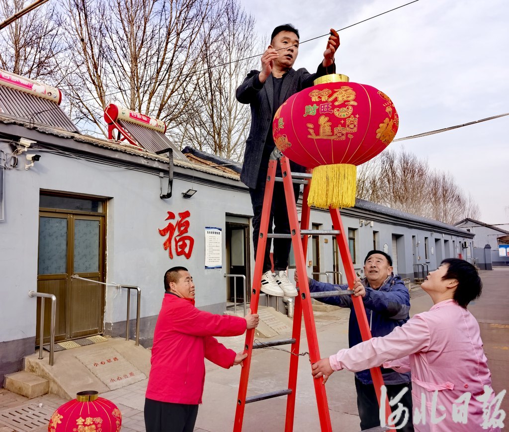 2月10日,农历腊月二十三,衡水市冀州区集中供养中心院长孙红旺(左二)在院里挂起了红灯笼。河北日报记者邢云摄