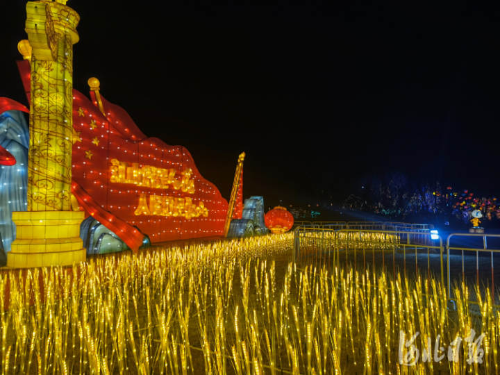 二龙戏珠的造型拱门迎接四方来宾,传统的荷花鲤鱼灯象征着年年有余,溜冰少年在湖心上的花样表演渲染着迎接冬奥的热烈氛围……“我的中国梦”“福满龙河”“时代之光”“一起向未来”“圆梦航天”“五福临门”等六大主题、20余个大型灯组、数千盏花灯点亮龙河中央公园。