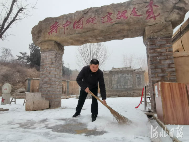 1月29日,西柏坡村老党员闫上青在民俗村清扫积雪,准备迎接新春第一波游客。河北日报记者董昌摄