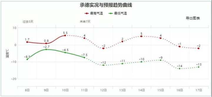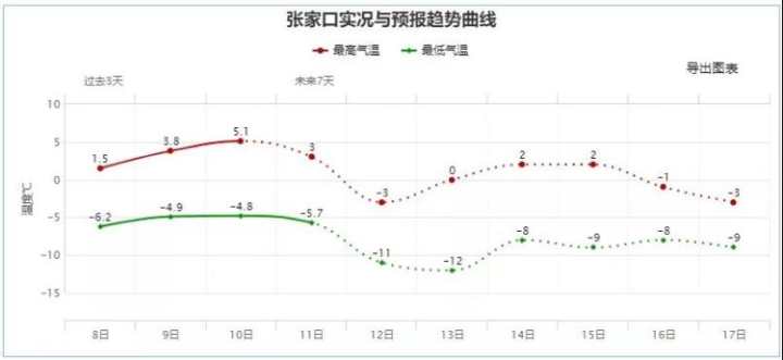 其中张家口北部、承德北部降至-16~-20℃,