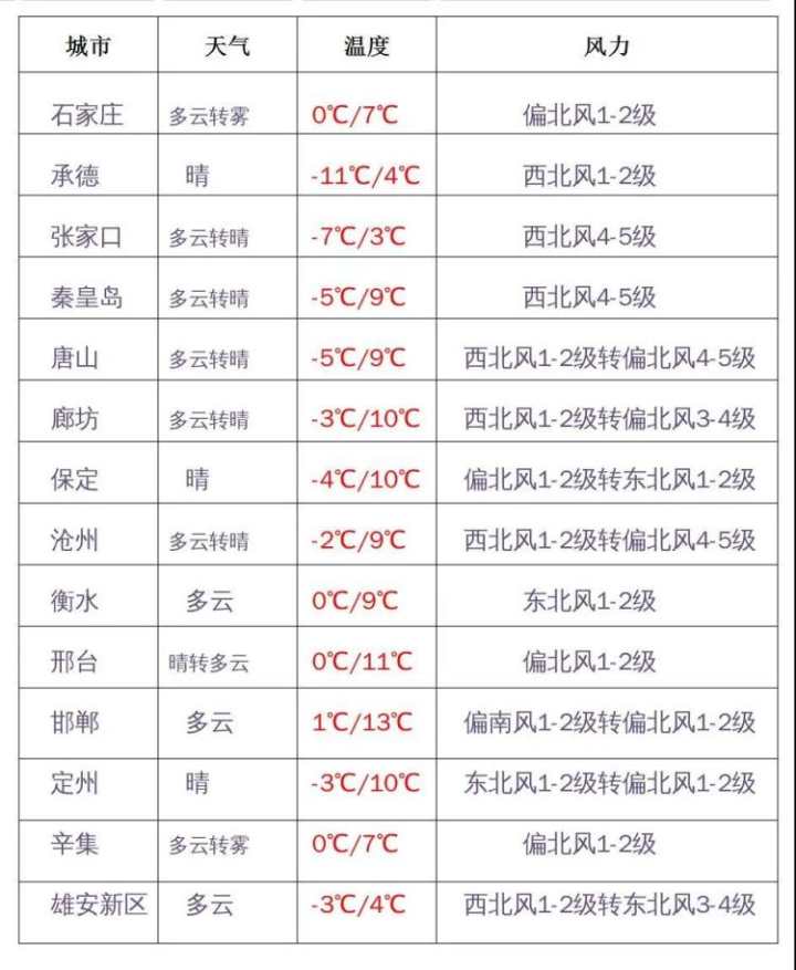 河北省气象台2021年12月11日11时发布天气预报