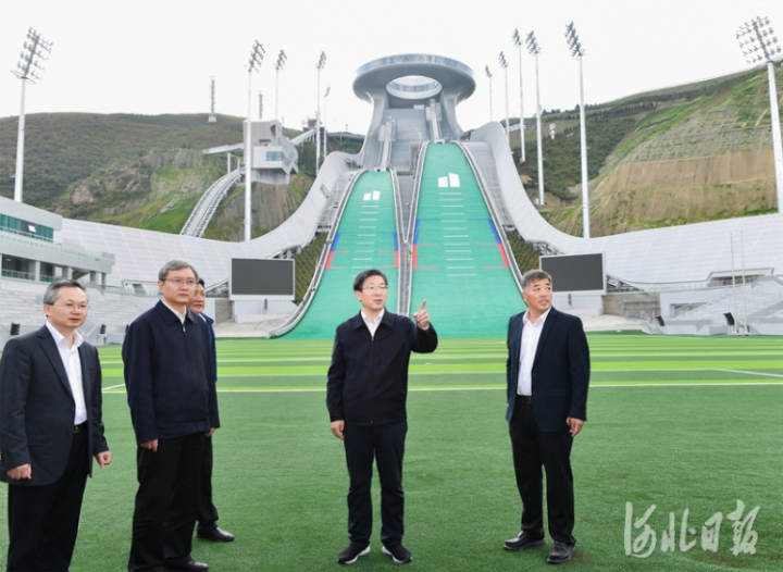 在国家跳台滑雪中心,王东峰实地察看场馆周边绿化、内部装修、观众看台建设等情况。他强调,要进一步提升周边环境,高水平、高品位做好绿化美化亮化净化工作,坚决消除盲点和死角。要进一步优化内部装修,精挑细选建材,注重色调搭配,确保场馆美观、安全、环保。要进一步强化赛事组织保障,超前制定工作方案和应急预案,确保观众观赛安全。