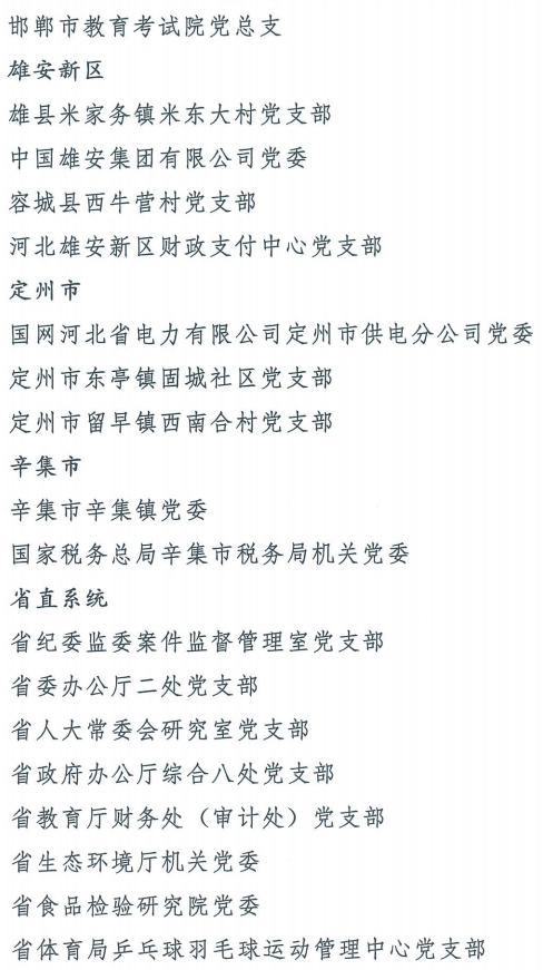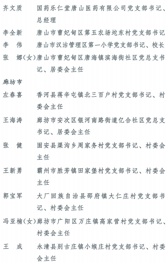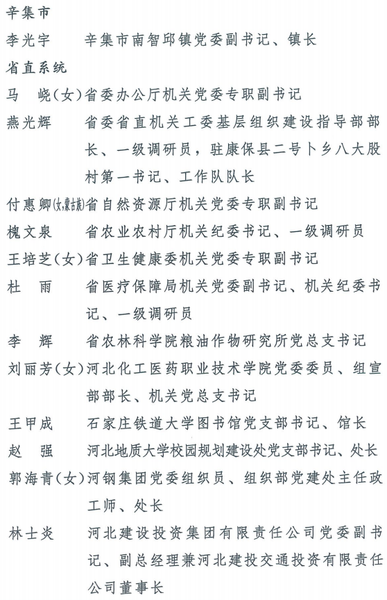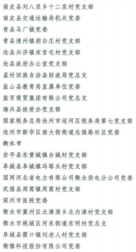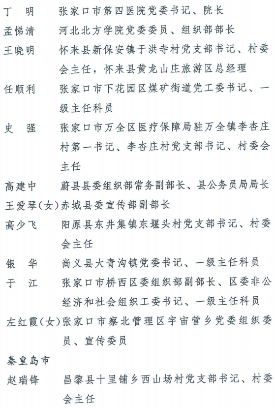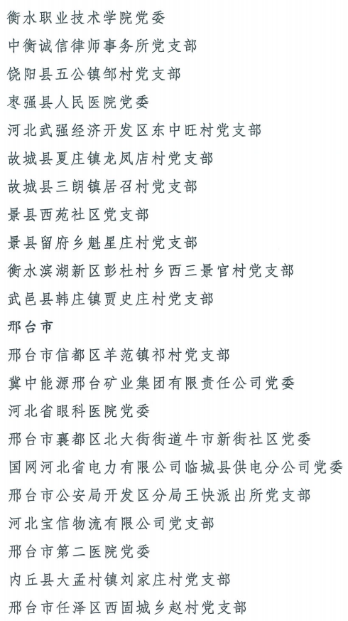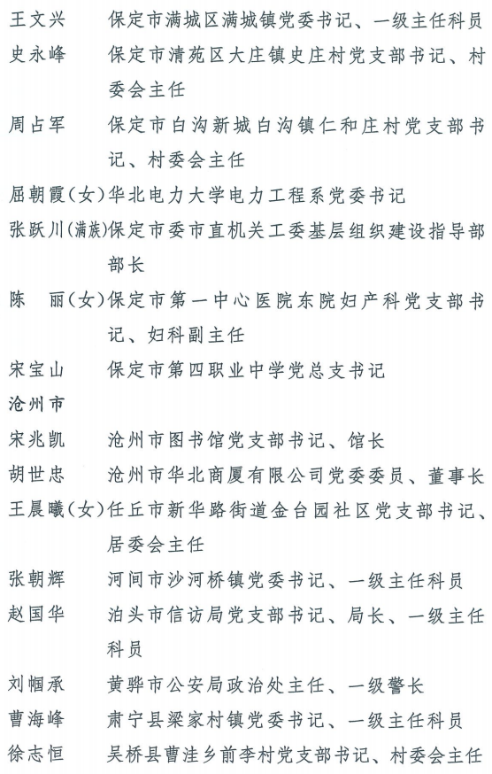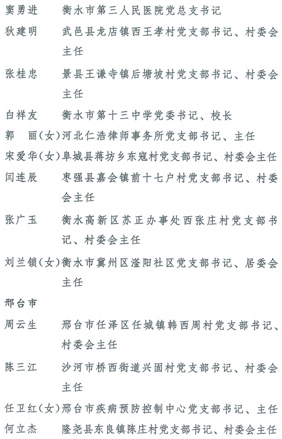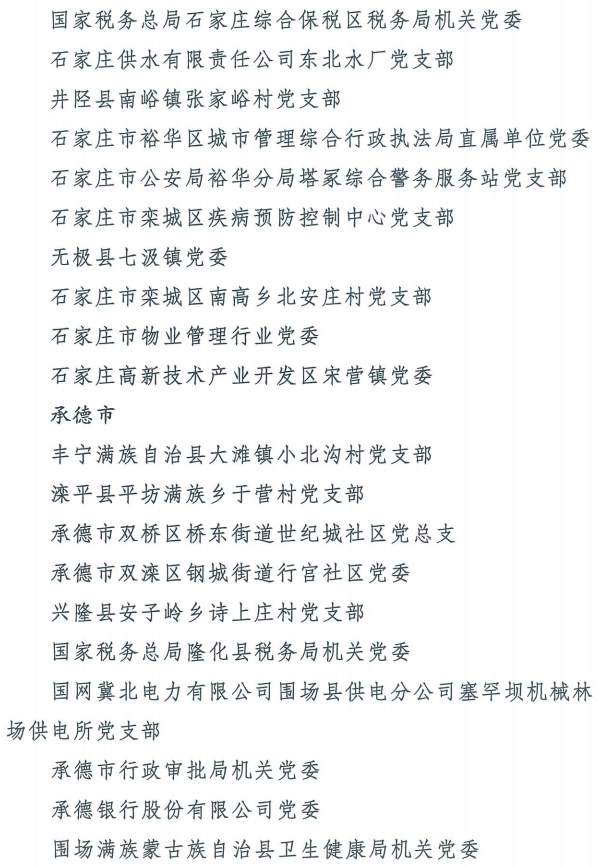 伟大时代呼唤伟大精神,崇高事业需要榜样引领。在庆祝中国共产党成立100周年的重大时刻,在“两个一百年”历史交汇的关键节点,为了表彰先进、弘扬正气,激励全省各级党组织和广大党员干部奋发作为、建功立业,省委决定,授予王红心等199名同志、追授张吉强同志“河北省优秀共产党员”称号,授予闫忠生等200名同志“河北省优秀党务工作者”称号,授予辛集市辛集镇党委等400个基层党组织“河北省先进基层党组织”称号,授予陈林静等200名同志“河北省优秀基层党组织书记”称号。他们的先进事迹和崇高精神,鲜明昭示了党的崇高理想、坚定信念、根本宗旨和无私奉献,继承发扬了党的红色基因、光荣传统、优良作风,生动彰显了新时代共产党人的政治品格和先锋形象。