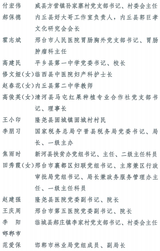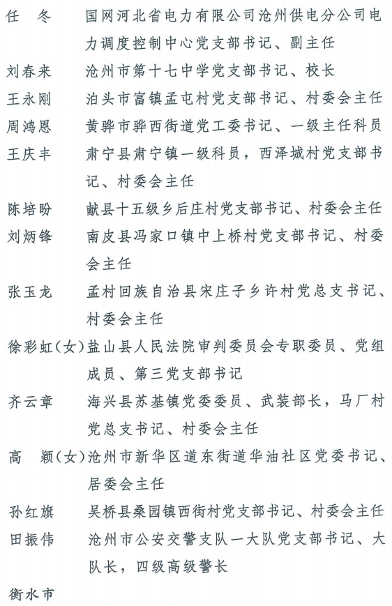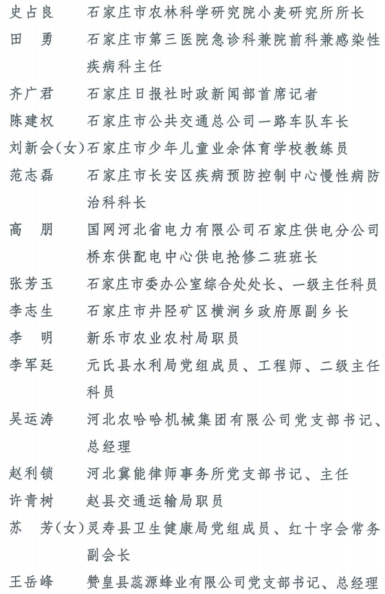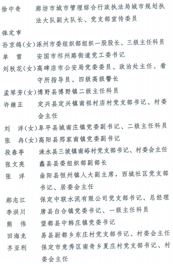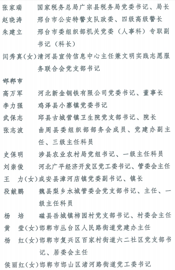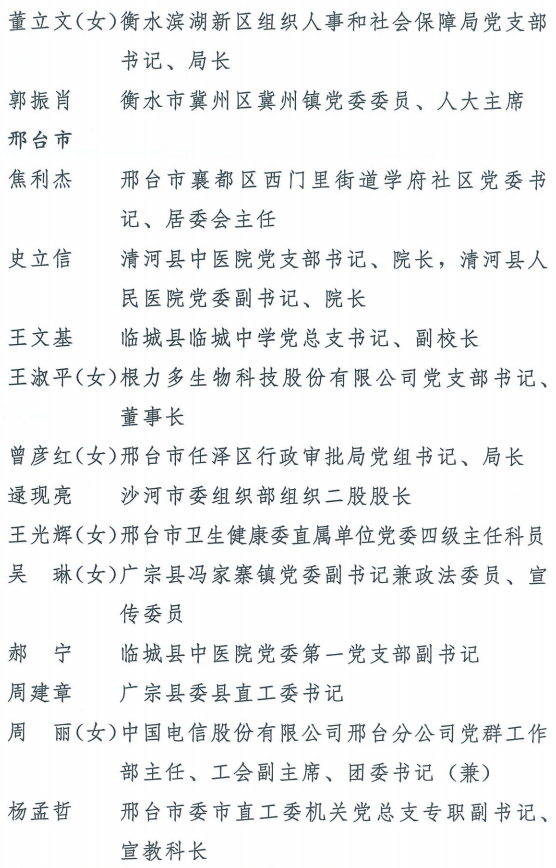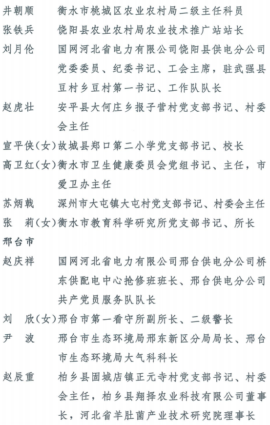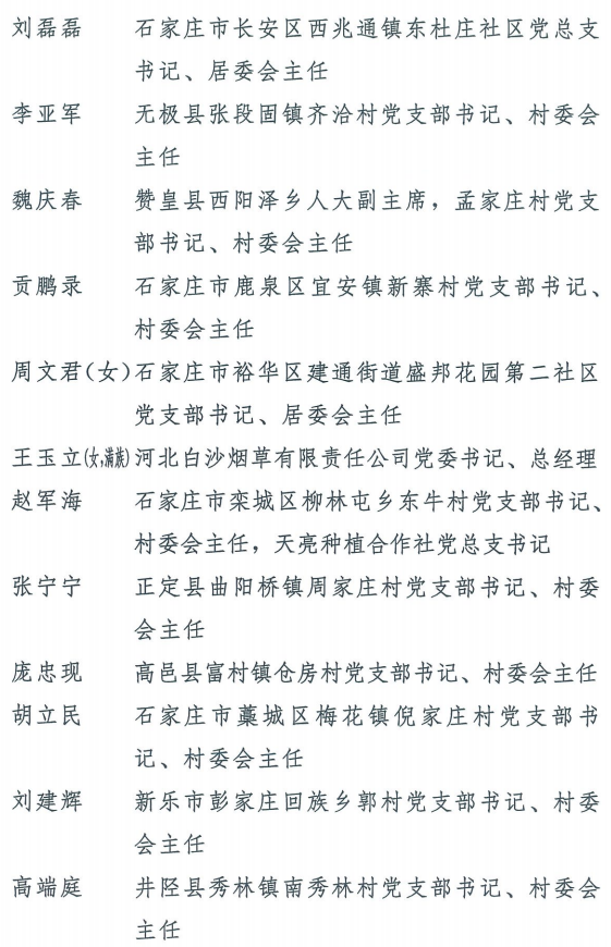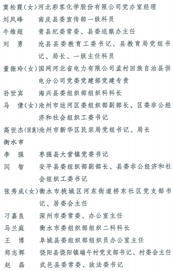 伟大时代呼唤伟大精神,崇高事业需要榜样引领。在庆祝中国共产党成立100周年的重大时刻,在“两个一百年”历史交汇的关键节点,为了表彰先进、弘扬正气,激励全省各级党组织和广大党员干部奋发作为、建功立业,省委决定,授予王红心等199名同志、追授张吉强同志“河北省优秀共产党员”称号,授予闫忠生等200名同志“河北省优秀党务工作者”称号,授予辛集市辛集镇党委等400个基层党组织“河北省先进基层党组织”称号,授予陈林静等200名同志“河北省优秀基层党组织书记”称号。他们的先进事迹和崇高精神,鲜明昭示了党的崇高理想、坚定信念、根本宗旨和无私奉献,继承发扬了党的红色基因、光荣传统、优良作风,生动彰显了新时代共产党人的政治品格和先锋形象。