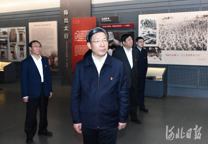 王东峰指出,涉县是全国著名的革命老区,革命先辈在这里抛头颅、洒热血,前赴后继,英勇战斗,建立了不朽功勋。重温峥嵘岁月,更加深切感受到民族解放来之不易、新中国来之不易、今天的好日子来之不易。全省各级党组织和广大党员干部群众要在重温党的光荣历史中,坚定理想信念,汲取精神力量,自觉同以习近平同志为核心的党中央保持高度一致,增强“四个意识”,坚定“四个自信”,做到“两个维护”,切实做到学党史、悟思想、办实事、开新局,为全面建设社会主义现代化国家和实现中华民族伟大复兴的中国梦作出新贡献。