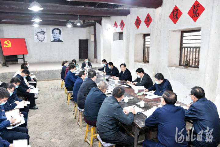 王东峰强调,要坚持完整准确全面贯彻新发展理念,确保“十四五”时期经济社会发展开好局、起好步。革命老区人民为我国的革命和建设事业付出了巨大牺牲、作出了重要贡献,把老区建设好、发展好是各级党委、政府的重要政治责任。要坚持发展第一要务不动摇,坚定不移以新发展理念引领高质量发展,努力走出一条新时代革命老区振兴发展之路,加快实现全体人民共同富裕。要扎实推进红色旅游发展,精心编制国土空间规划,高标准高质量建设太行红河谷文化旅游经济带,推动旅游强县富民。要扎实推进产业结构调整和优化升级,建立健全市场化法治化化解过剩产能长效机制,深入推进传统产业高端化智能化绿色化改造,加快形成新的经济增长点。要扎实推进新型城镇化和城乡统筹发展,立足冀中南功能拓展区定位,持续推动县城扩容提质,加大新城建设与老城改造力度,统筹推进美丽乡村建设和“空心村”治理,不断改善老区生产生活条件和整体发展面貌。要扎实推进污染防治和生态建设,持续打好蓝天、碧水、净土保卫战,深化散煤治理、扬尘治理和冬季清洁安全取暖,抓好矿山治理和生态修复,加快建设天蓝地绿水秀的美丽河北。