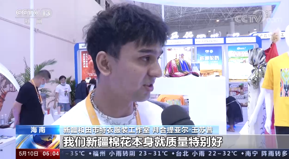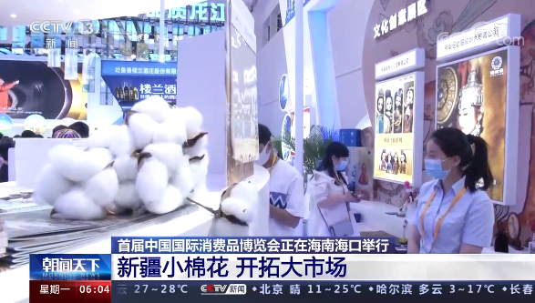 2020年新疆棉产量达516万吨,占全国棉花产量87%,相当于全国棉花消费量的62%。最具特色也是品质最高的新疆长绒棉,更是得到消费者的青睐。消博会新疆展区,五家新疆纺织代表企业,覆盖了从原材料到成品服装的全产业链,他们希望通过展会把新疆棉花推向更广阔的市场。