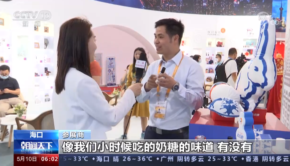 消博会参展商:对啊,这种味道奶甜奶甜的,像小时候吃的奶糖的味道?有没有?