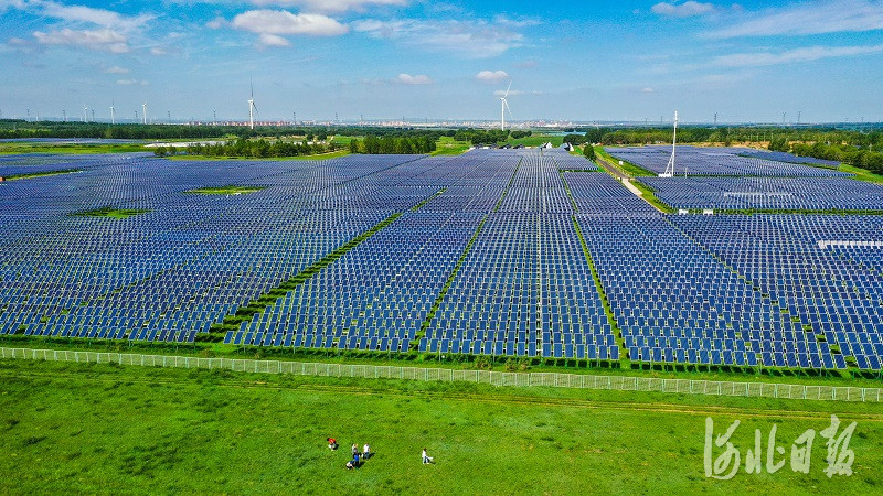 无人机航拍位于张家口市张北县的光伏发电项目。河北日报记者耿辉摄