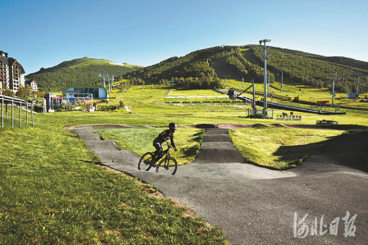 游客在张家口市崇礼区太舞滑雪场骑行。 河北日报记者耿辉摄