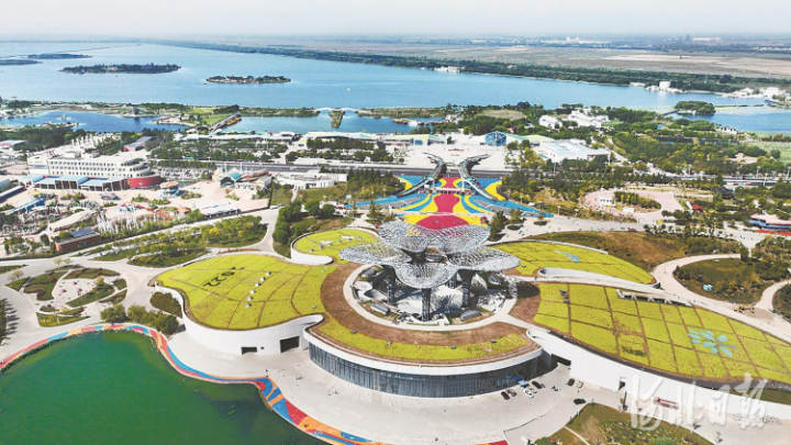 景色怡人的衡水园博园与衡水湖遥相呼应。河北日报记者焦磊摄