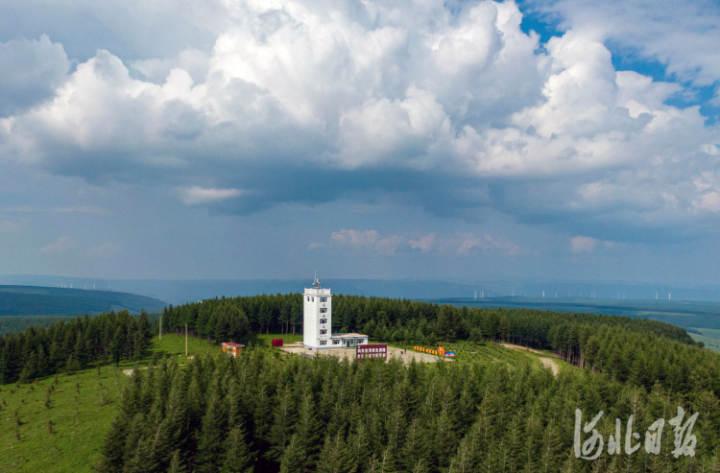 塞罕坝蓝天白云,绿波涌动,万顷林海尽收眼底。 河北日报记者赵杰摄
