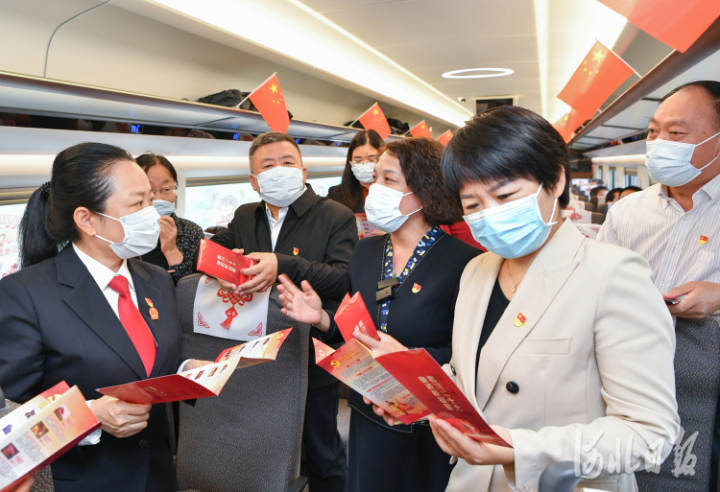 10月13日上午,我省出席党的二十大代表集体乘火车赴京。河北日报记者赵海江摄