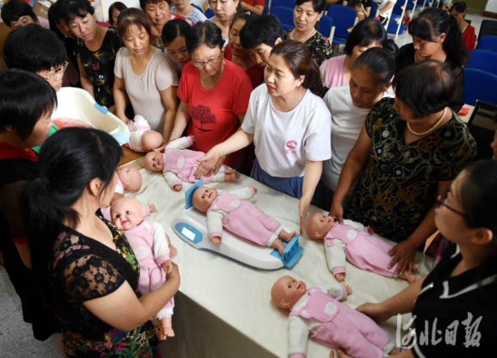 宁晋县百灵家政服务有限公司的育婴师在北楼下村开展婴幼儿护理技能培训,帮助妇女学技能促就业。河北日报记者赵永辉摄