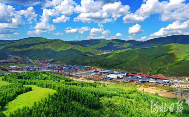 夏日里的张家口崇礼太子城冰雪小镇白云飘飘,绿意盎然。目前,崇礼的森林覆盖率达71.53%,冬奥核心区更是超过80%。 河北日报通讯员马佳琦摄