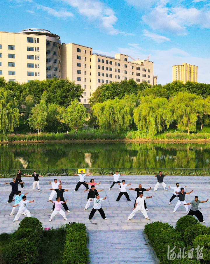 蓝天白云下,霸州市民在公园打拳健身。 河北日报记者赵永辉摄