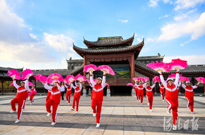 10月1日,在张北县德胜村文化广场上,村民们跳起舞蹈欢度国庆。河北日报记者 耿 辉摄