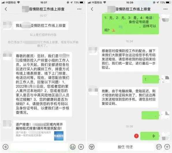 诈骗者冒充防疫中心工作人员,以受害者是“密切接触者”为由,向受害者发送钓鱼链接短信,诱导受害者点击链接填写个人信息。他们还会询问受害者最近接触过的相关人员姓名和电话号码,索要身份证号码等相关信息。