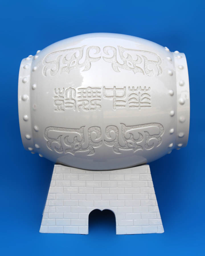 由国家级非物质文化遗产代表性项目邢窑陶瓷烧制技艺省级代表性传承人耿辉敏制作的邢白瓷作品《鼓舞中华》,以传统打击乐器鼓为主体,表达了鼓舞中华儿女砥砺前行之意,激发出人们团结奋进的精神力量。