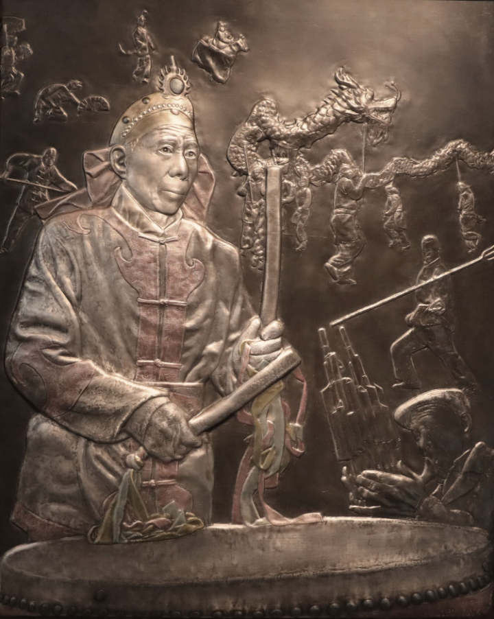 铁板浮雕《锣鼓阵阵喜迎二十大》